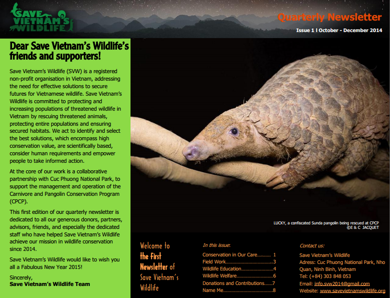 Nguyễn Văn Thái, président de « Save Vietnam’s Wildlife » : « Pour lutter contre ce phénomène, notre organisation s’est lancée à corps perdu dans diverses missions : sauvetage et préservation des animaux sauvages confisqués issus du trafic, recherches et études en vue d’une meilleure gestion des populations animalières dans leurs milieux naturels et campagnes de sensibilisation. En outre, nous collaborons avec les autorités pour faire respecter la loi sur les animaux sauvages, mais aussi pour garantir le bien-être des animaux vivant dans des zoos ou des centres de sauvegarde ».