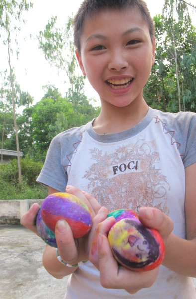 « J’ai eu l’idée de fonder cette société à but non lucratif pendant ma visite au musée Pablo Picasso, à Barcelone. Sur un mur, il y avait ces mots : « Quand j'étais enfant, je dessinais comme Raphaël mais il m'a fallu toute une vie pour apprendre à dessiner comme un enfant ». Cette parole a été comme un déclic pour moi ! Ici, on imprime des dessins d’enfants sur toutes sortes de produits en cotton pour les vendre ensuite. Pourquoi « To he » ? En fait, c’est le nom d’un jouet artisanal traditionnel. On faisait cuire à la vapeur de la farine de riz gluant en ajoutant quelques colorants comestibles pour modeler des animaux, des fleurs ou des personnages de contes de fées. Et quand les enfants avaient le ventre creux, ils pouvaient les manger tout de suite. C’est à peu de choses près le but de notre socité : venir en aide à nos petits peintres », a dit Dinh Nguyen.