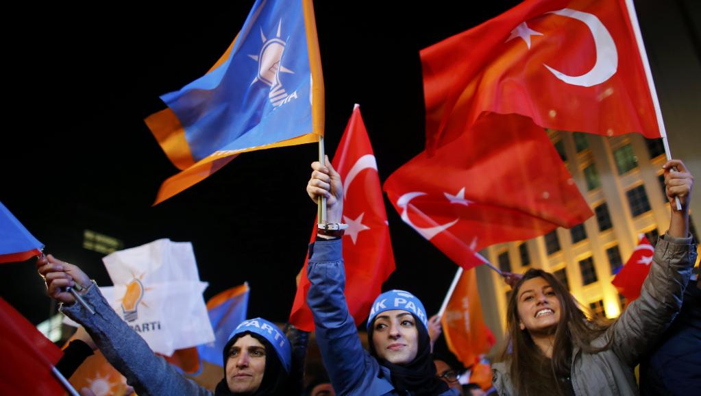 Gratifiée de 49,4 % des suffrages, la formation du président Recep Tayyip Erdogan enverra 316 députés au parlement (sur 550), assez pour gouverner seule. Le Parti républicain du peuple n’a obtenu que 23%. Le Parti démocratique des peuples (HDP, prokurde) a réussi, d'extrême justesse, à conserver des sièges en récoltant 10,4%.