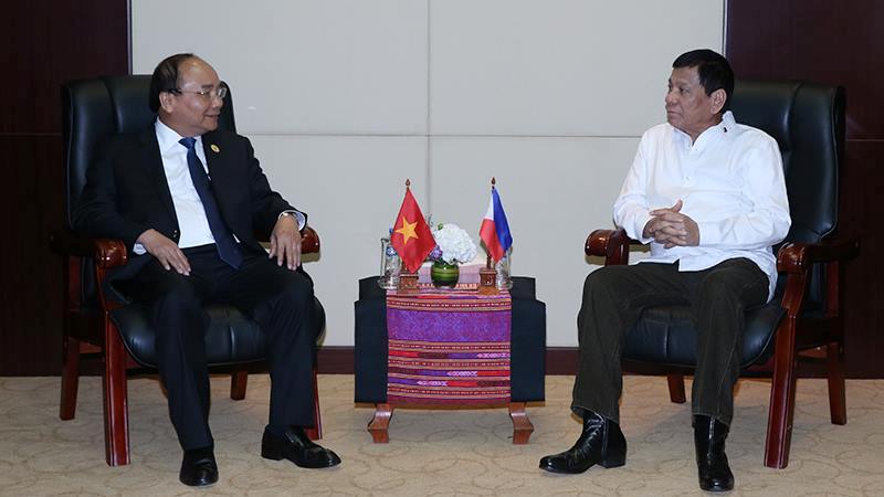 (VOVworld) - Après l’ouverture des sommets, Nguyen Xuan Phuc a rencontré le président philippin Rodrigo Duterte pour la première fois. Vietnamiens et Philippins ont souligné l’importance du maintien de la paix, de la sécurité et de la promotion de la coopération en mer Orientale.