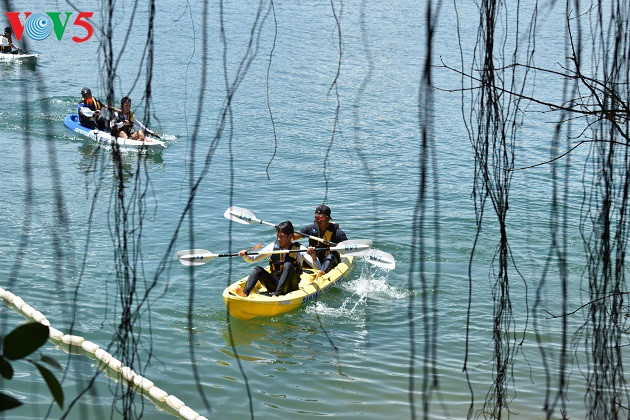 Une course de kayak sur le lac Phú Ninh