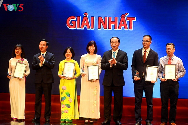 (VOVWORLD) - L’émission intitulée “Intégration internationale, une histoire vietnamienne” a décroché un premier prix au concours national 2016 de l’Information pour l’étranger. Ses auteurs, Nguyen Thi Thu Hoa, Vu Thi Anh Huyen et Vu Nhat Quynh, journalistes à VOV5, avaient déjà été récompensés de ce même prix en 2014 et 2015.