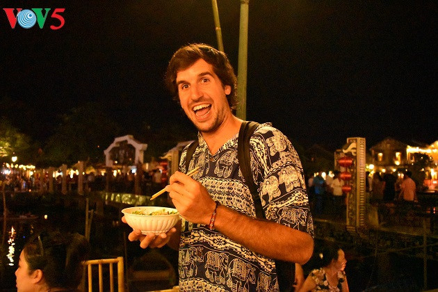 Para wisatawan sangat interesan ketika datang di Kota Hoi An dan menikmati masakan cao lau yang khas. |