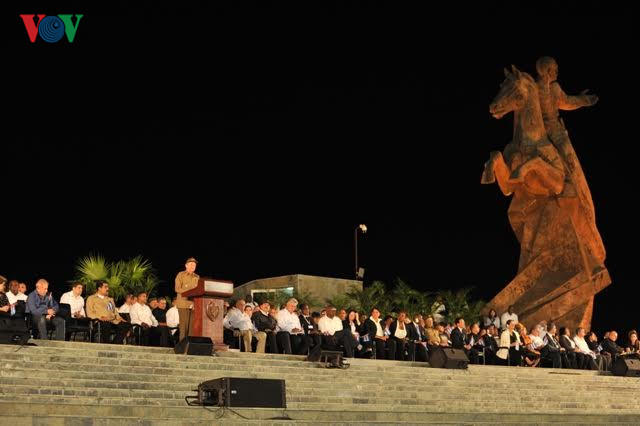| Presiden Kuba, Raul Castro membacakan pidato di depan acara ini |
