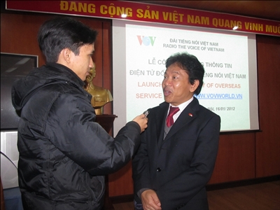 Bapak Nguyen Dang Tien - Direktur Jendral VOV membaca pidato untuk meresmikan website resmi VOV5.