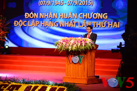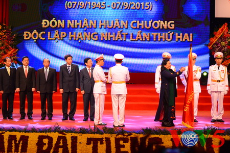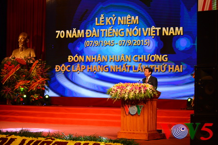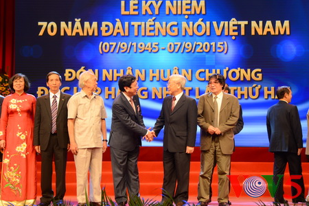 (VOVworld) – Pada Senin pagi (7 September), di kota Hanoi, Radio Suara Vietnam (VOV) dengan khidmat mengadakan peringatan ultah ke-70 berdirinya (7 September 1945 – 7 September 2015) dan menerima Bintang Kemerdekaan kelas satu untuk kedua kalinya. Yang menghadiri acara ini ada Sekretaris Jenderal Komite Sentral Partai Komunis Vietnam (KS PKV), Nguyen Phu Trong, mantan Presiden Le Duc Anh, Wakil Ketua Majelis Nasional Tong Thi Phong, Kepala Departemen Penggerakan Massa Rakyat KS PKV, Ha Thi Khiet, Deputi Perdana Menteri Vu Duc Dam dan wakil berbagai Kementerian, Instansi dan Badan pusat.