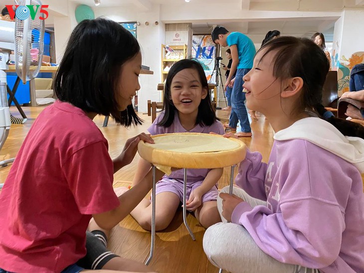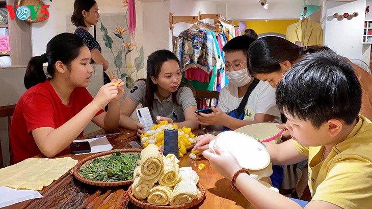 Pada program pengalaman ini, anak-anak diperkenalkan oleh guru Luong Thanh Hanh, Kepala Koperasi Nam Cao tentang tahapan pembuatan sutra |