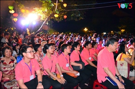 (VOVworld) - Seperti biasa, setiap kali hari bulan purnama tiba, lampu listrik di semua rumah kuno di kota Hoi An padam, alih-alih lampu-lampu lampion yang berwarna-warni dipasang, sehingga menciptakan sinar yang berkilau-kilau di kota ini. Khususnya pada malam bulan purnama bulan tiga imlek tahun ini, kota Hoi An menjadi bergelora karena keberadaan 150 seniman amatir asal 45 rombongan paduan suara dari 15 negara di dunia. Mereka datang ke kota Hoi An, provinsi Quang Nam untuk menghadiri lomba paduan suara internasional Vietnam kali ke-4. Berlangsung bertepatan dengan peringatan ultah ke-40 pembebasan total Vietnam Selatan dan penyatuan Tanah Air (30 April 1975 - 30 April 2015) dengan pesan: “Konektivitas antara jantung - jantung”, lomba ini telah memberikan satu ruang musik yang berwarna-warni dan penuh dengan persahabatan. Peristiwa seni musik berkaliber internasional ini juga merupakan kesempatan besar untuk memperkenalkan dan menyosialisasikan citra-citra kota Hoi An kepada para wisatawan domestik dan mancanegara.