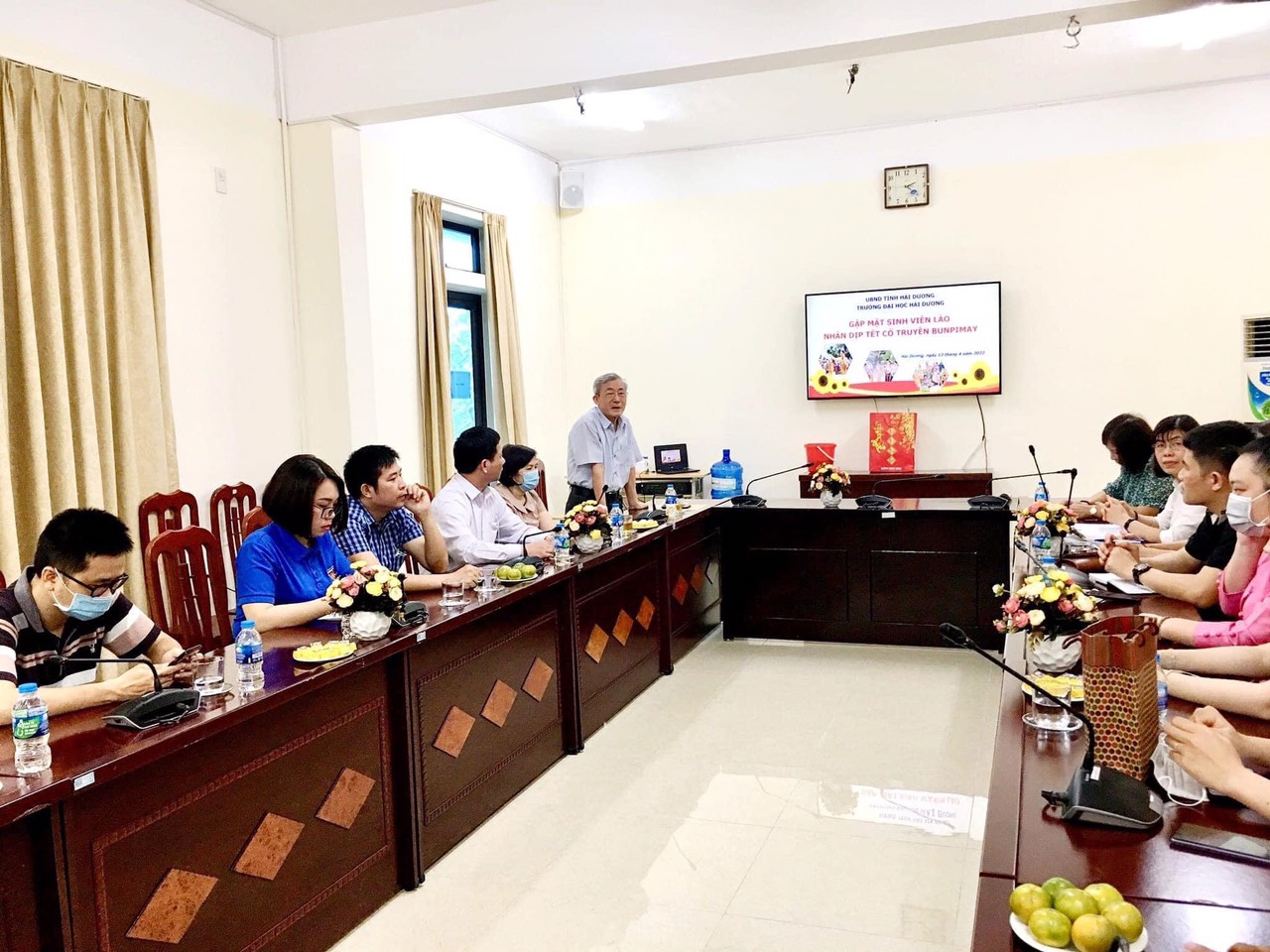 Bapak Dao Hang berbicara dalam pertemuan dengan mahasiswa Laos di Universitas Hai Duong (Foto: Universitas Hai Duong) |