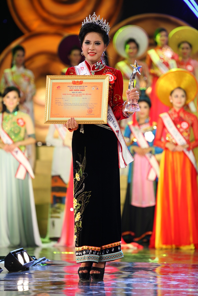 | Dinh Thi Thuy Trang, etnis H're dari propinsi Quang Ngai meraih gelar "Kecantikan yang menunjukkan pakaian tradisional yang paling indah" |