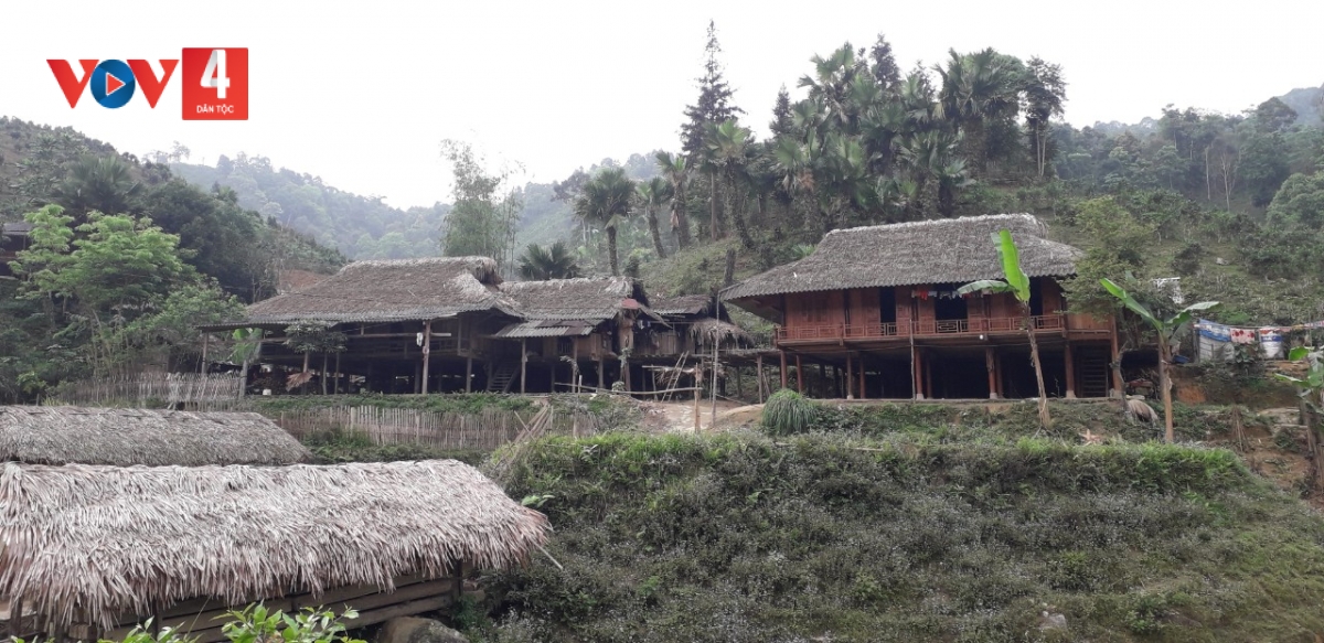Rumah-rumah panggung tradisional dari warga etnis Tay di Ban Lien (Foto: Giang Sep Pua /VOV4) |