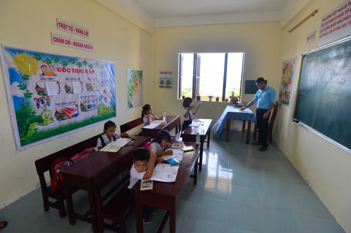 ![]() Klas belajar di pulau Sinh Ton. Foto: Koran Angkatan Laut