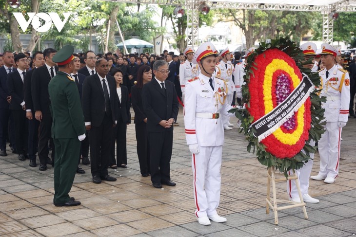 Banyak negera termasuk Laos, Tiongkok, Kamboja, Kuba, Republik Korea, Australia, dan sebagainya telah mengirim delegasi tingkat tinggi datang untuk berziarah dan menghadiri upacara belasungkawa Sekjen Nguyen Phu Trong.