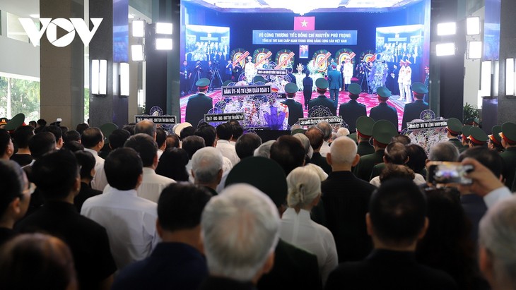 Selama dua hari dari tgl 25 hingga tgl 26 Juli, Presiden To Lam, Perdana Menteri (PM) Pham Minh Chinh, Ketua MN Tran Thanh Man, Ketua Pengurus Besar Front Tanah Air Vietnam, Do Van Chien telah mengepalai delegasi Partai, Negara, Pemerintah, MN, Pengurus Besar Front Tanah Air Vietnam datang untuk berziarah kepada Sekjen Nguyen Phu Trong.