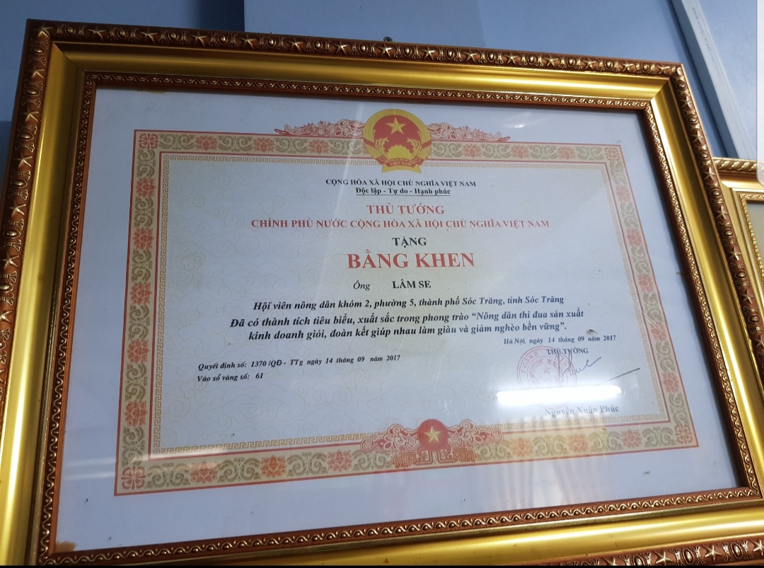 Selama bertahun-tahun ini, bapak Lam Se diakui sebagai petani yang pandai melakukan produksi dan bisnis di provinsi. Dia mendapat kehormatan dianugerahi Piagam Pujian oleh Perdana Menteri Pemerintah bagi petani tipikal dan terkemuka dalam gerakan “Petani berkompetisi melakukan produksi dan bisnis secara baik, bersatu dan saling membantu untuk mencapai kesejahteraan serta mengurangi kemiskinan secara berkesinambungan”.