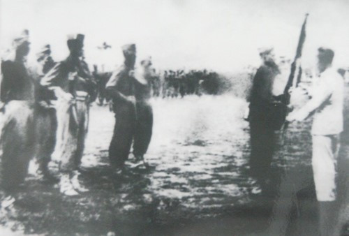 Presiden Ho Chi Minh mengunjungi dan memberikan kepada Sekolah Tinggi Tran Quoc Tuan bendera dengan 6 huruf bertatahkan emas: “Setia kepada Tanah Air, patuh kepada rakyat” di acara pembukaan tahun ajar angkatan ke-8 (yaitu angkatan pertama kursus militer Tran Quoc Tuan) pada tanggal 26/5/1946. |
