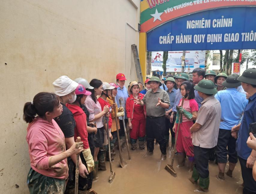PM Pham Minh Chinh menyapa situasi mengatasi dampak huạn dan banjir (Foto: Ha Van/VGP) |