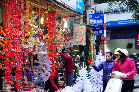 (VOVworld) - Selama beberapa hari ini, suasana Natal yang bergelora telah melanda semua jalan di kota Hanoi. Citra pohon Natal, Santa Klaus, rusa kutub beserta lagu-lagu terkenal "