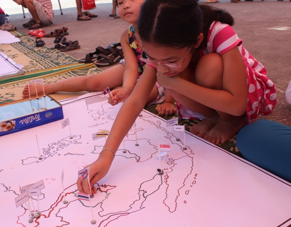(VOVworld) - Salah satu diantara aktivitas-aktivitas yang menyerap partisipasi dari banyak anak-anak dan warga ibukota Hanoi dalam kesempatan Fetival Medio Musim Rontok - tahun 2013 ialah program: “Bergembira dengan Festival Medio Musim Rontok sambil menguak tabir Asia Tenggara”. Program ini terdiri dari aktivitas-aktivitas seperti mengadakan pagelaran busana tradisional, memperkenalkan permainan-permainan folklor dan kuliner dari negara-negara di kawasan yang diselenggarakan oleh Museum Etnologi Vietnam berkoordinasi dengan beberapa Kedutaan Besar ASEAN di kota Hanoi dan Asosiasi Persahabatan kota Hanoi dari 14-15 September ini.
