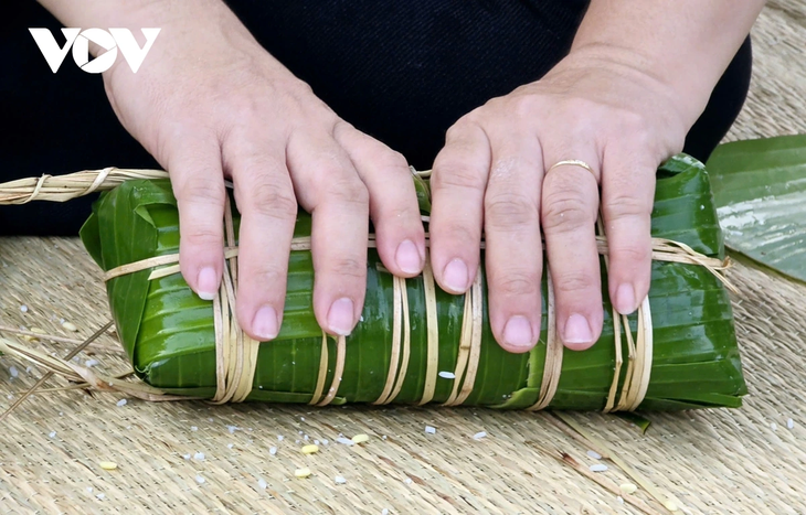 | Melalui kegiatan membungkus kue Chung, perasaan antara tentara dan rakyat yang dekat dan erat telah ditunjukkan. |