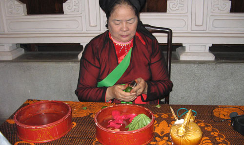 Satu tepak sirih yang diukir secara teliti dan halus dengan buah-buah pinang, daun sirih hijau diletakkan di atas altar, dari orang Vietnam pada abad ke-18 yang diperkenalkan pada pameran tersebut telah memanifestasikan secara paling hidup-hidup satu ruang budaya orang Vietnam masa lampau, serta membuat para pengunjung dapat mengetahui arti pentingnya sirih pinang dalam kehidupan kultural dan spiritualitas dari orang Vietnam.