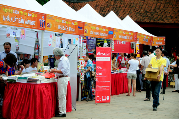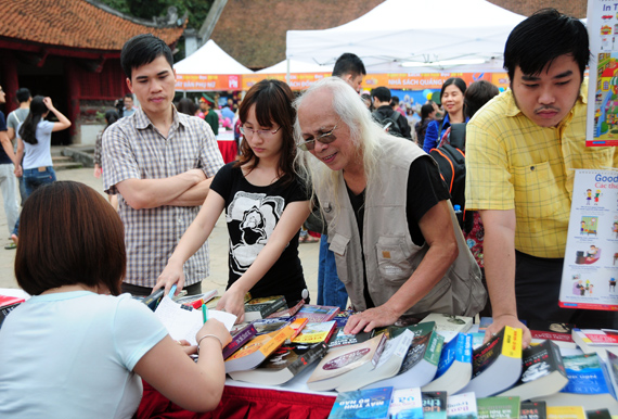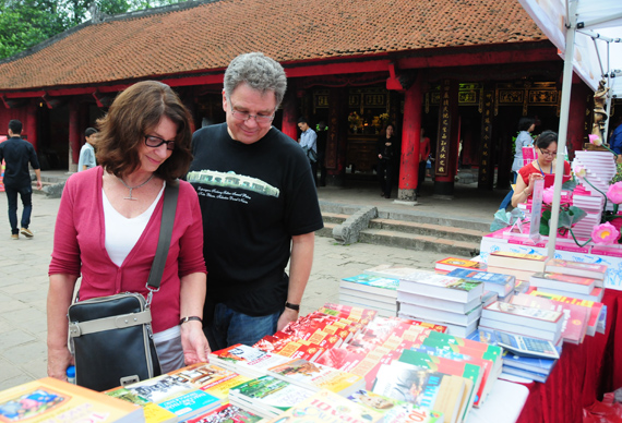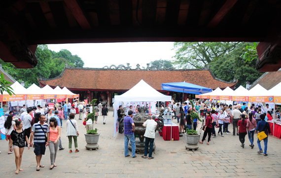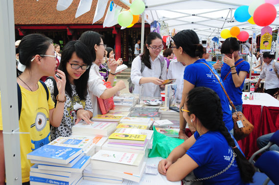 (VOVworld) - Untuk menyambut Hari Buku Vietnam (21 April), di Kuil Sastra Van Mieu - Quoc Tu Giam (Sekolah Tinggi yang pertama di Vietnam) diadakan Pesta Buku - Kebudayaan dengan tema "