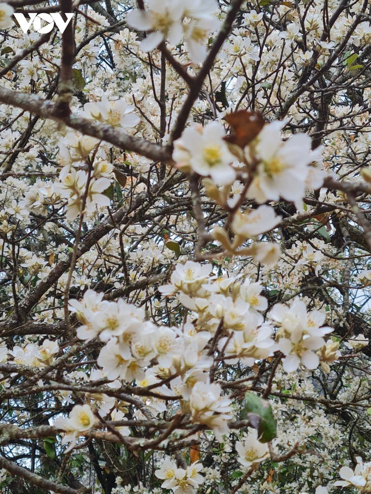 Di tempat tinggi, bunga Son Tra bermekaran sehingga memutihkan gunung, bukit, dan lembah...
