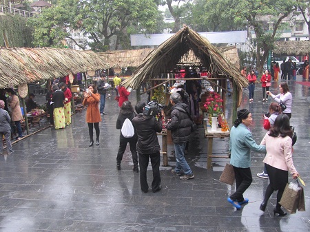 Sementara itu di sudut pasar desa sangat bergelora dan ramai dengan panorama pembeli dan penjual. Pasar desa dengan warung-warungnya dibuat dari daun, sampan dari bambu, kursi dari kayu beserta jenis-jenis barang khas dari berbagai desa di Vietnam utara di halaman Museum Wanita Vietnam bagaikan kado istimewa untuk para ibu rumah tangga. Ibu Le Thi Thu dari provinsi Hung Yen, memberitahukan: “