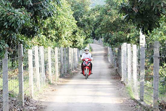 Warga di Kecamatan Chieng Khuong, Kabupaten Song Ma merawat kebun kelengkeng (Foto: VNA) |
