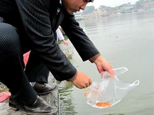 Ikan karper setelah disembahyangkan akan dilepaskan ke danau atau sungai