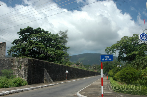 Jalan yang indah dan bersih yang menuju ke rumah penjara Con Dao sekarang |