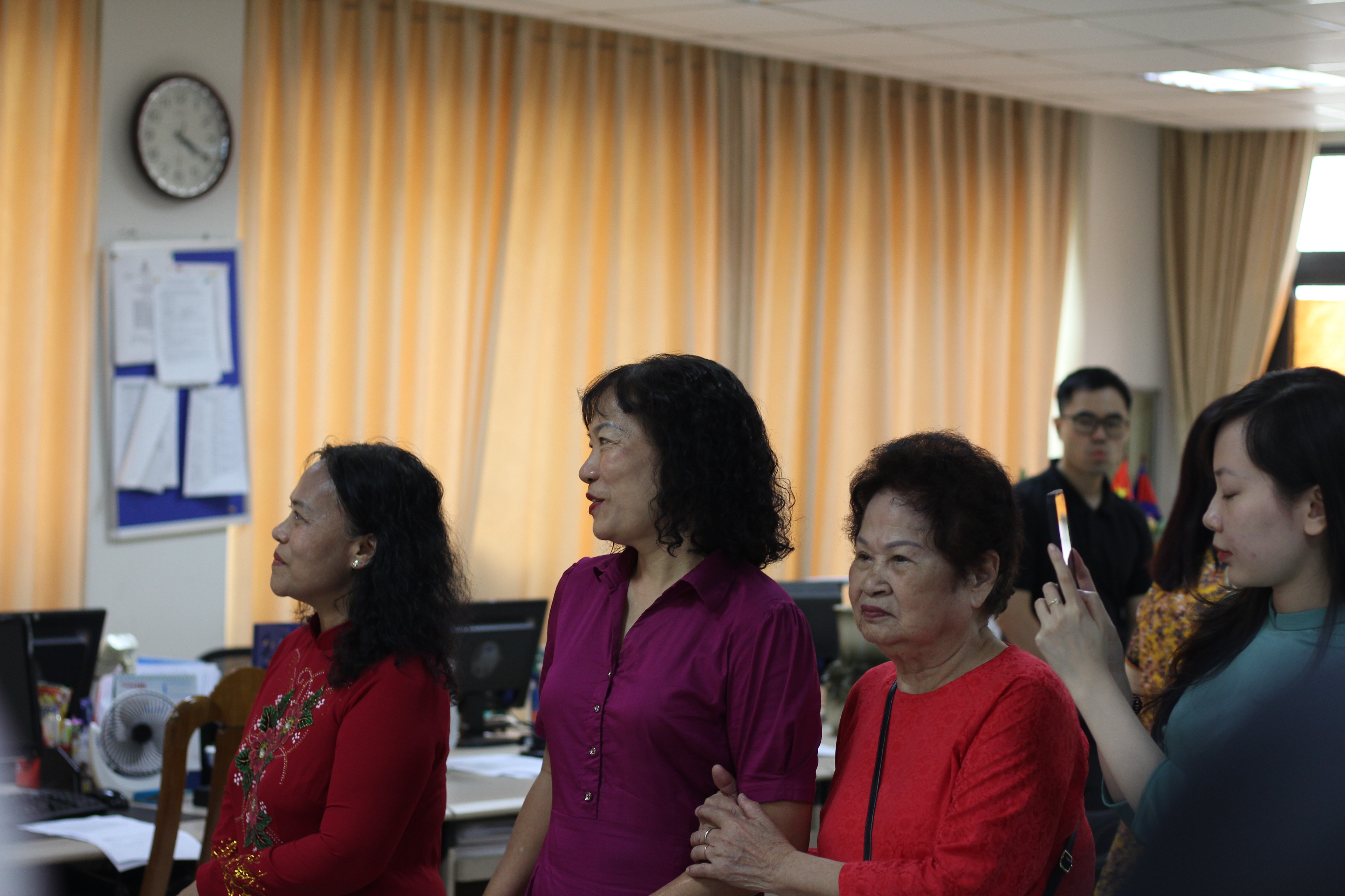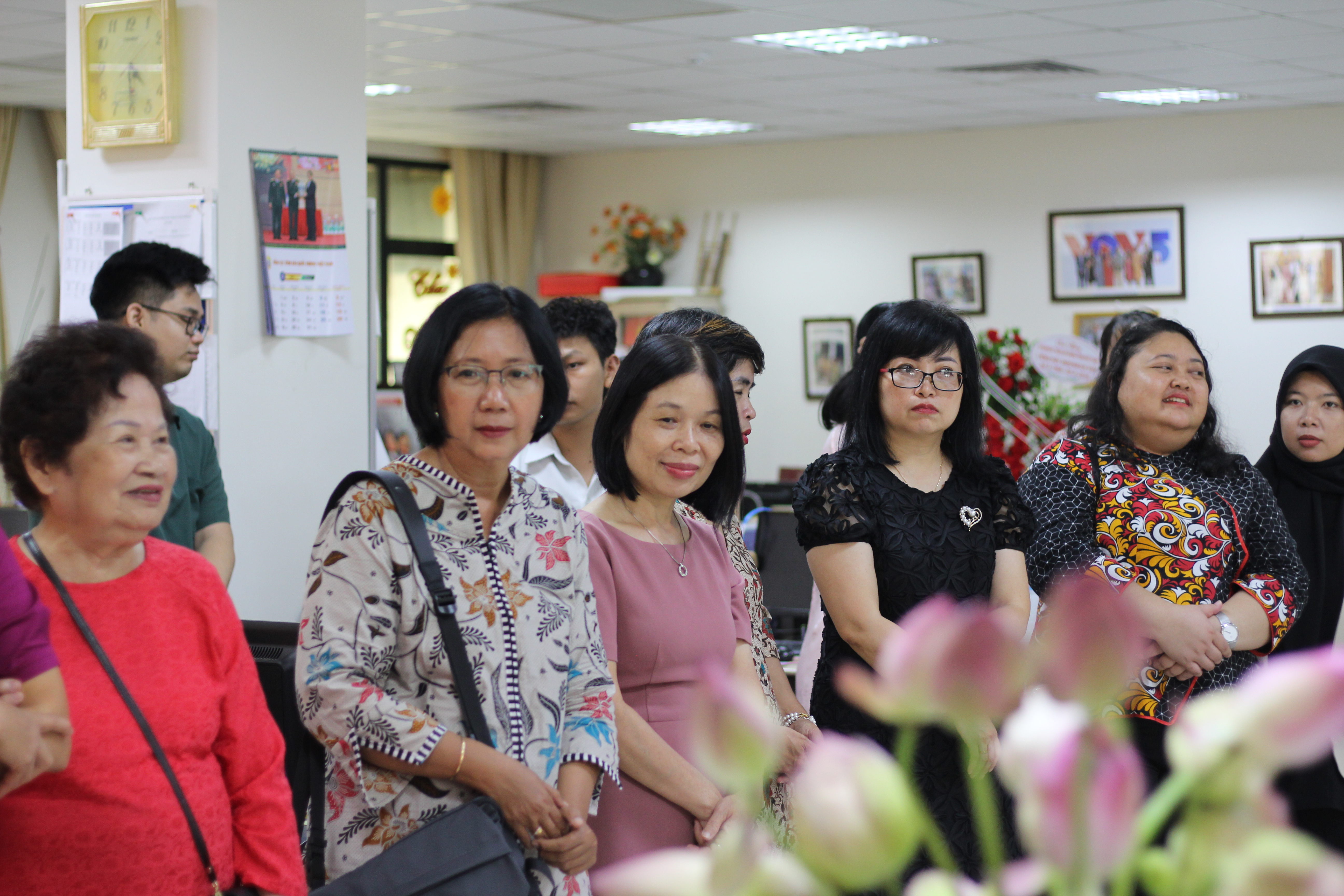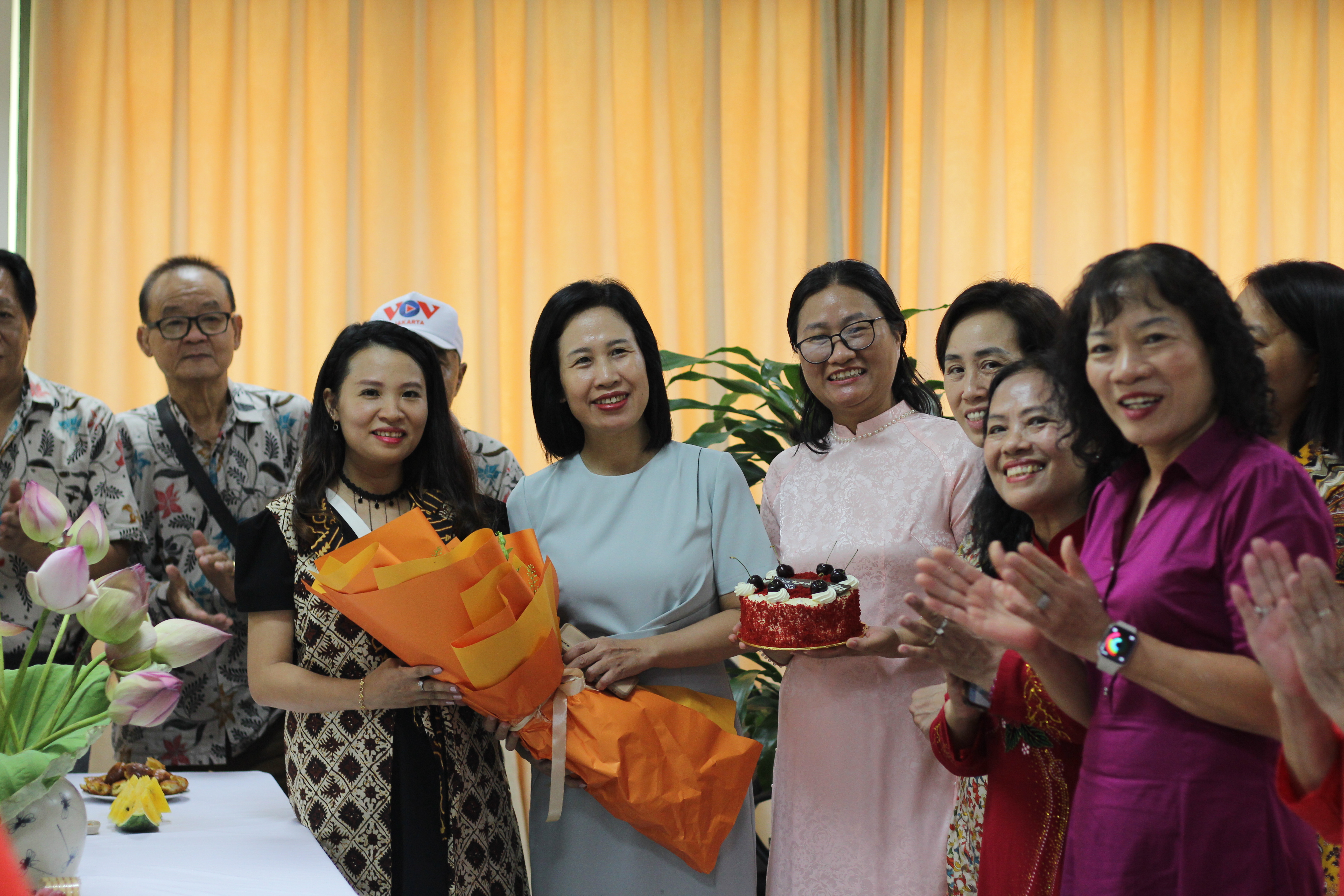 Para pendengar memfoto bersama dengan pimpinan, pejabat dan editor VOV5. |