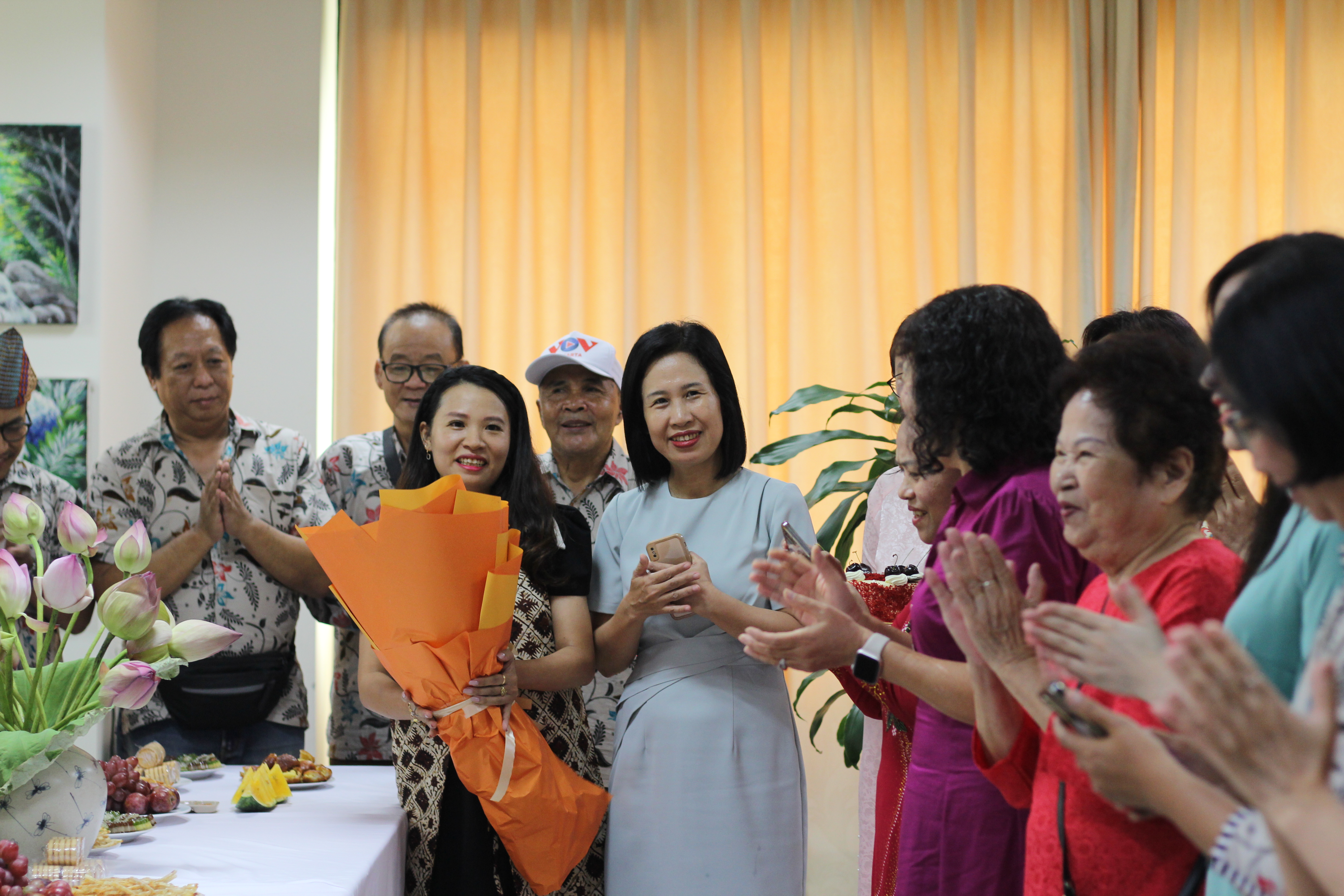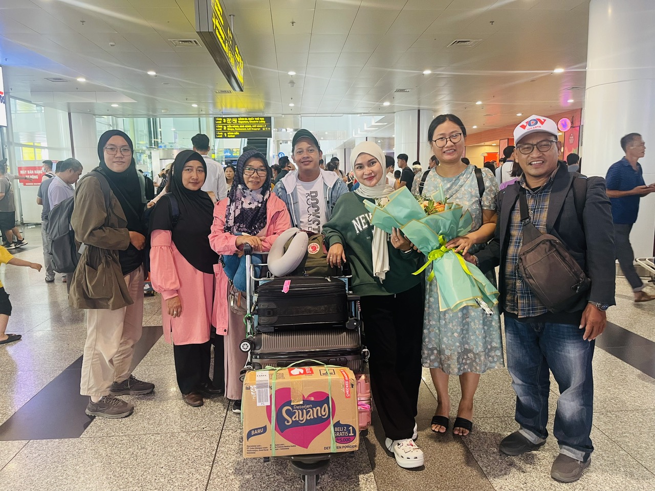 Setibanya di bandara internasional Noi Bai, pada tanggal 27 Juni, rombongan pendengar disambut oleh para penyiar Program siaran bahasa Indonesia. |