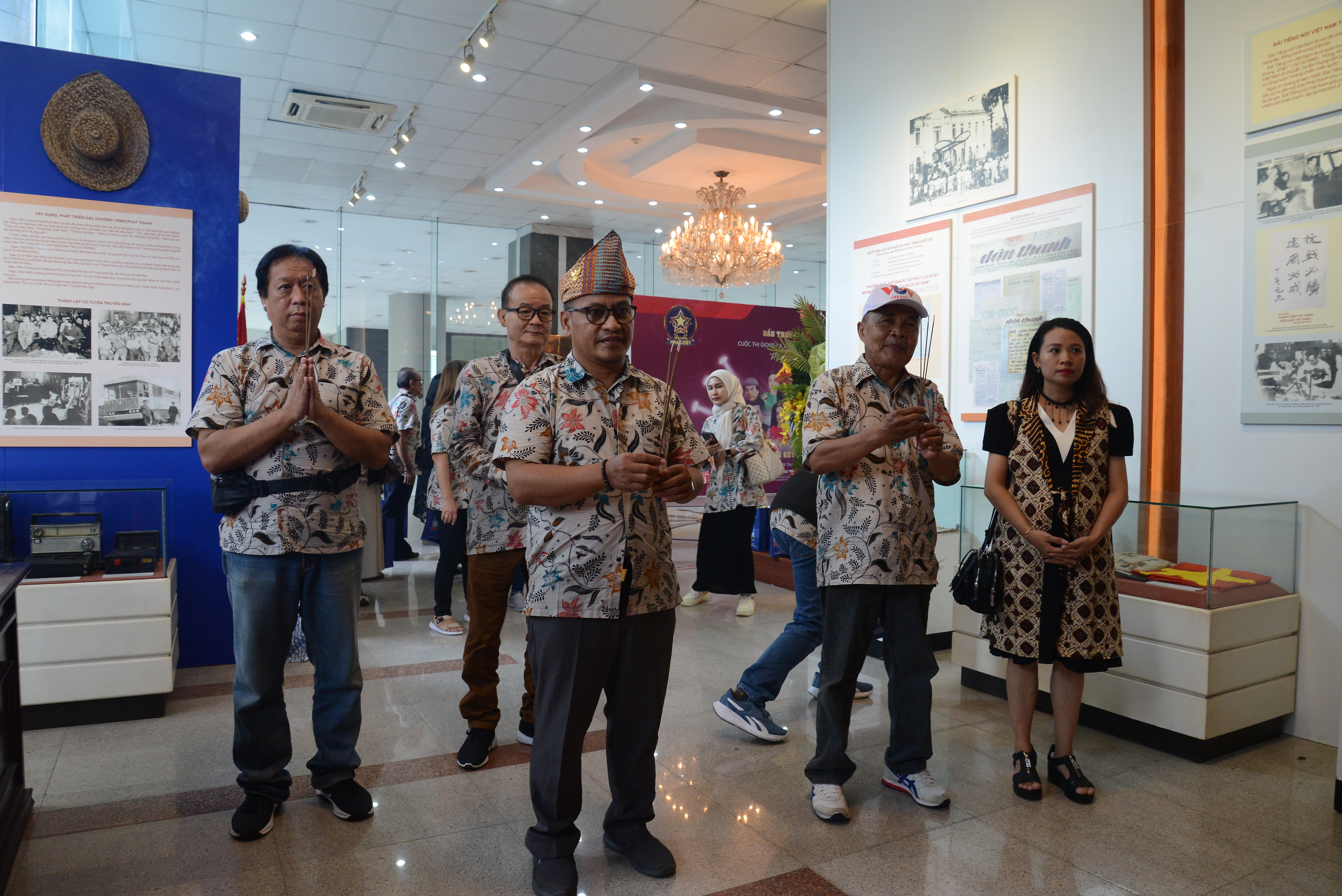 Rombongan pendengar Indonesia membakar hio di Ruang peringatan Presiden Ho Chi Minh dan mengunjungi Ruang tradisi VOV di Pusat Penyiaran Nasional (Jalan Quan Su nomor 58, Hanoi) |