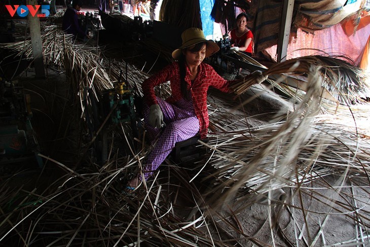 Ketika pohon tumbuh, mereka memotong untuk dibawa ke rumah, dibuat menjadi bahan penganyaman dengan banyak proses yang berbeda. Foto: Nguyen Ngoc Hai/VOV