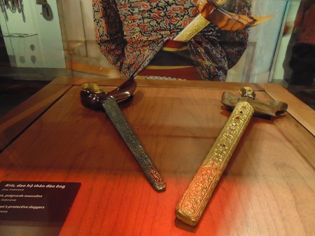 Ketika masuk ke pintu gedung ini, akan kelihatan satu ruang pameran tentang barang dari kain dan aktivitas kehidupan sehari-hari; topi yang ditempeli dengan biji dari wanita etnis Akha di Laos, bakul gendongan yang tingginya 1,5 meter dari orang Filipina atau kotak dari emas untuk menyimpan benda-benda upacara dan barang lak dari orang Myanmar. Dengan catatan-catatan dalam bahasa Vietnam, bahasa Inggeris dan bahasa Perancis, juga kelihatan di sini adanya barang-barang dari kain yang khas dari banyak negara dengan bermacam-macam bahan seperti kain dari serat pisang milik Filipina, motif-motif di kain batik milik Malaysia yang ditempatkan di samping kerangka alat tenun milik Vietnam, Laos dan Thailand, alat untuk merebus dan membatik dari Malaysia. Daymo Vulavong, mahasiswa tahun ke-3 Akademi Administrasi – seorang mahasiswa Laos sangat terkesan terhadap barang-barang dari kain dari negara-nya yang dipamerkan di sini. Dia memberitahukan: “Ketika mengunjungi museum ini, saya merasa gembira ketika kelihatan busana tradisional, beberapa alat yang beken yang dimilik Laos dipamerkan di sini. Selain itu juga memandangi beberapa alat dalam aktivitas kehidupan sehari-hari dari beberapa negara ASEAN. Melalui itu, saya juga mengerti sebagian kebudayaan negara-negara ASEAN”.