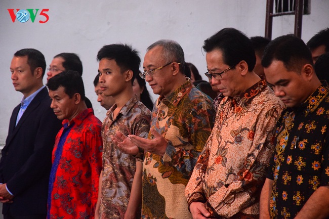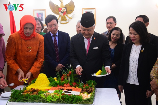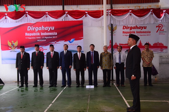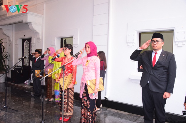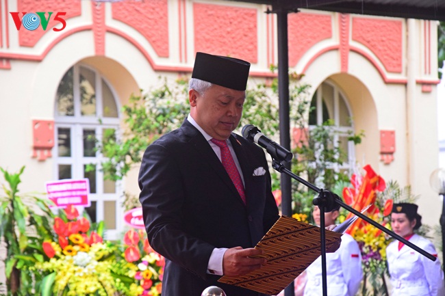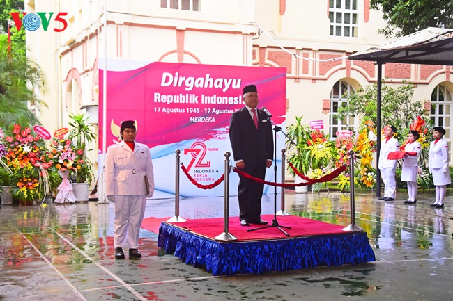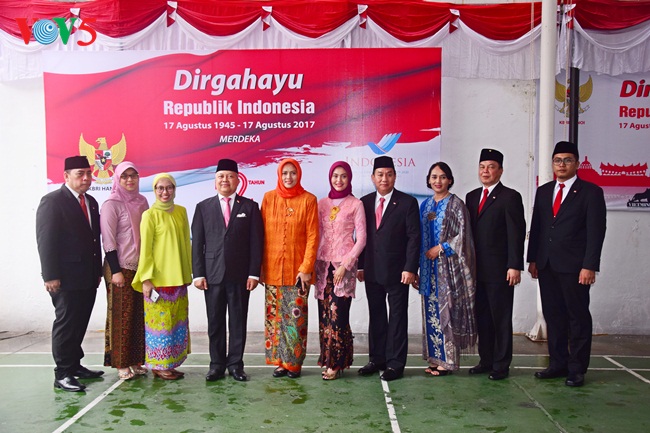 (VOVWORLD) - Kedutaan Besar Republik Indonesia, Kamis pagi (17/8) mengadakan acara peringatan ulah ke-72 Hari Kemerdekaan Republik Indonesia. Dihadiri acara ini ada kira-kira 100 undangan yang adalah wakil dari korps diplomatik di Vietnam, para pejabat dan staf KBRI, wakil berbagai grup dan perusahaan Indonesia di Vietnam, komunitas orang Indonesia yang sedang tinggal, belajar dan bekerja di Vietnam. Ini merupakan kegiatan tahunan dari KBRI di kota Hanoi.