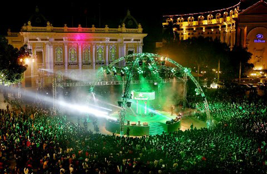 Suasana menyambut Tahun Baru 2012 di depan Gedung Teater Hanoi