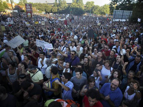 Puluhan ribu orang dari semua penjuru negeri Spanyol selama tiga hari ini telah berkumpul di ibu kota Madrid untuk mengikuti demonstrasi besar yang bertujuan memprotes langkah-langkah ekonomi keras yang diterakan pinggang dari pemerintah negara ini. Demonstrasi itu diimbau oleh Persekutuan “Konferensi Tingkat Tinggi Sosial” yang terdiri dari ratusan asosiasi sosial. Sebagian besar demonstan adalah pegawai negeri, mereka memprotes penaikan pajak dan penurunan biaya untuk jasa sosial. Para demonstran telah menjunjung tinggi slogan yang antara lain mengatakan bahwa pemerintah Spanyol sedang melaksanakan kebijakan untuk kepentingan semua pasar keuangan internasional, Uni Eropa dan Dana Moneter Internasional (IMF), tapi tidak demi kepentingan rakyat Spanyol. Demonstransi itu meledak ketika pemerintah negara ini menyatakan akan mengajukan reformasi- reformasi ekonomi baru pada akhir bulan ini, menurutnya akan memperkuat langkah-langkah memperketat pinggang, memangkas pengeluaran biaya sebanyak kira-kira USD 125 miliar dalam waktu selama tiga tahun. Sebagai gantinya, Madrid akan menerima USD 36 miliar pertama pada bulan ini juga dari paket talengan senilai USD 122 miliar dari IMF dan semua institusi keuangan Eropa untuk membantu semua bank negara ini menghadapi utang-utang bermasalah akibat pengaruh dari gelembung real estate dan prosentasi pengangguran yang mencapai kira-kira 25 persen. Sedangkan di Portugal, demonstrasi juga meledak di ibu kota Lisabon dan banyak kota yang lain dengan partisipasi dari seratus ribu orang, bahkan telah berubah terjadi bentrokan antara kaum demonstran dan pasukan keamanan di luar Gedung Parlemen. Kantor IMF juga menjadi sasaran serangan dari kaum demonstran. Penyebab-nya yalah untuk bisa menerima talangan senilai USD 110 miliar, pemerintah negara ini harus menerapkan kebijakan memperketat pinggang, menurutnya kaum pekerja harus membayar lebih banyak uang untuk jasa- jasa pengaman sosial.
