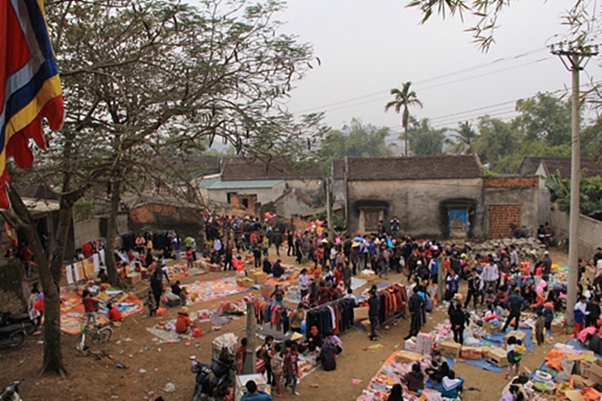 Pada pagi hari tanggal 27 bulan duabelas saban tahun, warga desa Moc (Quan Nhan, kota Hanoi) berkumpul di pasaran desa satu-satunya sepanjang tahun. Pasar diadakan di Balai Desa Moc, di samping kolam bunga teratai. Selain barang-barang seperti buah pisang hijau, jeruk Bali, daun ganyong...., juga ada para artisan yang membuat mainan tradisional anak-anak bernama “To he”.