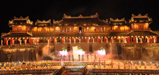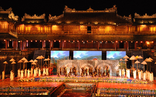 (VOVworld) - Pada Sabtu malam 7 April, di kota Hue, provinsi Thua Thien Hue berlangsung upacara pembukaan Tahun Pariwisata Nasional daerah pantai Trung Bo Utara - Hue dan Festival Hue 2012. Semua acara dalam upacara pembukaan ini telah membawa para pengunjung ke perjalanan di sepanjang daerah warisan di daerah pantai Trung Bo Utara beserta acara kesenian yang dipertunjukkan oleh para seniman-seniwati dari kota-kota yang bersejarah di dunia seperti Beijing - Tiongkok, Moskwa - Rusia, Seoul - Republik Korea dan Paris - Perancis. Berikut ini kami mempersembahkan beberapa momen pada malam pembukaan ini.