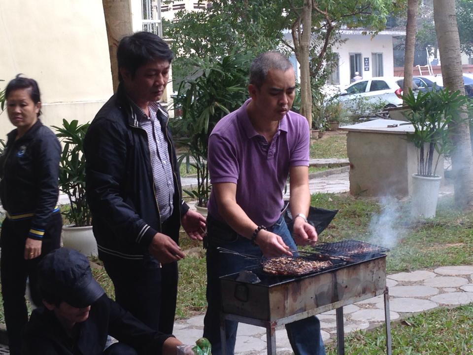 Para "koki" Vietnam juga sedang membakar sate ala Vietnam