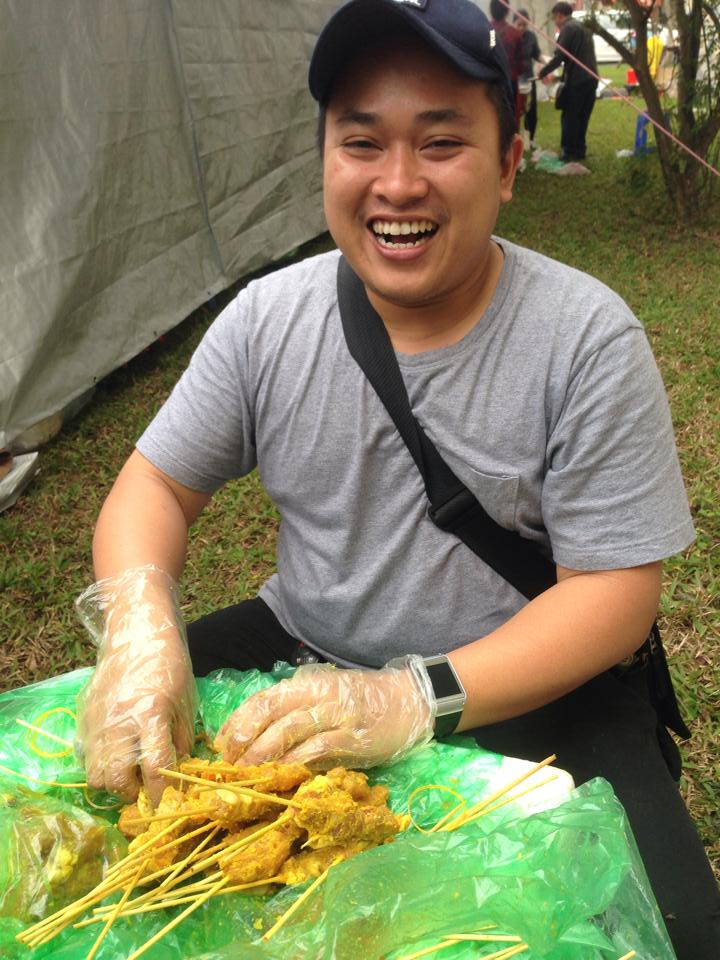 Staf Kedubes Malaysia juga ikut menyiapkan sate sebelum dibakar