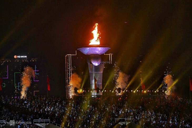 Menara api SEA Games ke-31 resmi dinyalakan. Foto: Vũ Toàn/ VOV