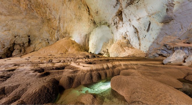 (VOVworld) - Gua Son Doong terletak di taman nasional Phong Nha - Ke Bang, provinsi Quang Binh, jauhnya kira-kira 500 Km dari ibukota Hanoi. Gua ini mendapat pengakuan sebagai gua yang paling besar di dunia. Dalam gua gua terdapat sistim ekologi yang kaya raya, beraneka-ragam dan lengkap dimana ada sungai, gunung, sistim fana, satwa beserta berbagai stalaktik, stalakmit yang luar biasa indahnya. Sampai sekarang, usaha menetapkan umur gua Son Doong tetap merupakan satu hal yang sulit. Para ilmuwan memprediksi bahwa gua ini berumur dari 2-5 juta tahun. Marilah kita bersama-sama melihat beberapa gambar dalam sistim gua Son Doong melalui kumpulan foto 360 derajat.