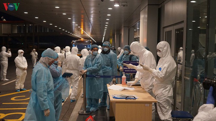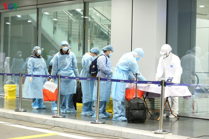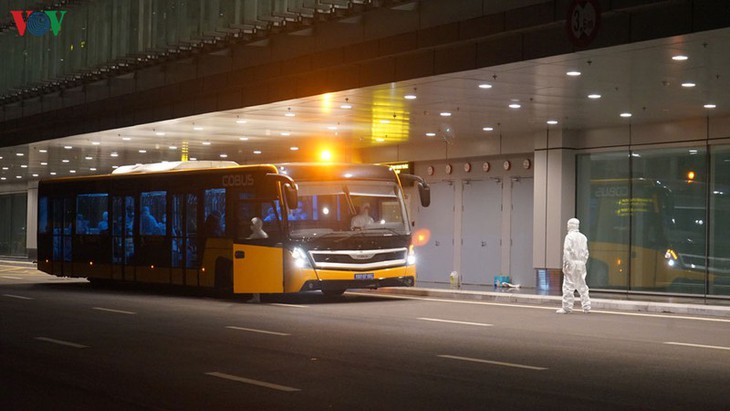 Penumpang dan kru di misi penerbangan tersebut semuanya harus melaksanakan prosedur yang ditetapkan untuk para penumpang yang kembali dari daerah wabah, menurut ketentuan Pusat Pemeriksaaan Kesehatan Internasional dan dibawa ke zona karantina untuk diperiksa, dipantau kesehatannya dalam waktu 14 hari di Rumah Sakit Tropis basis kedua (Kota Hanoi).