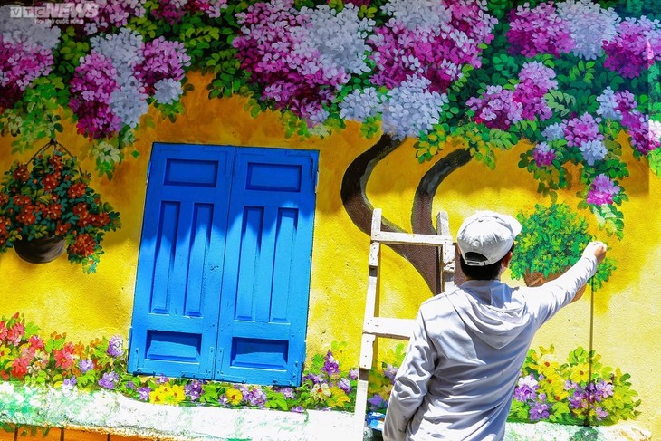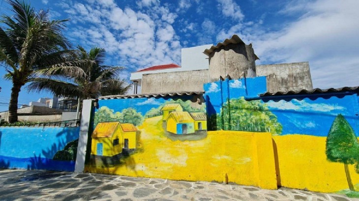 Jalan-jalan dengan fresko yang berwarna-warni akan menarik lebih banyak wisatawan ke desa nelayan ini. Foto: baogiothong.vn