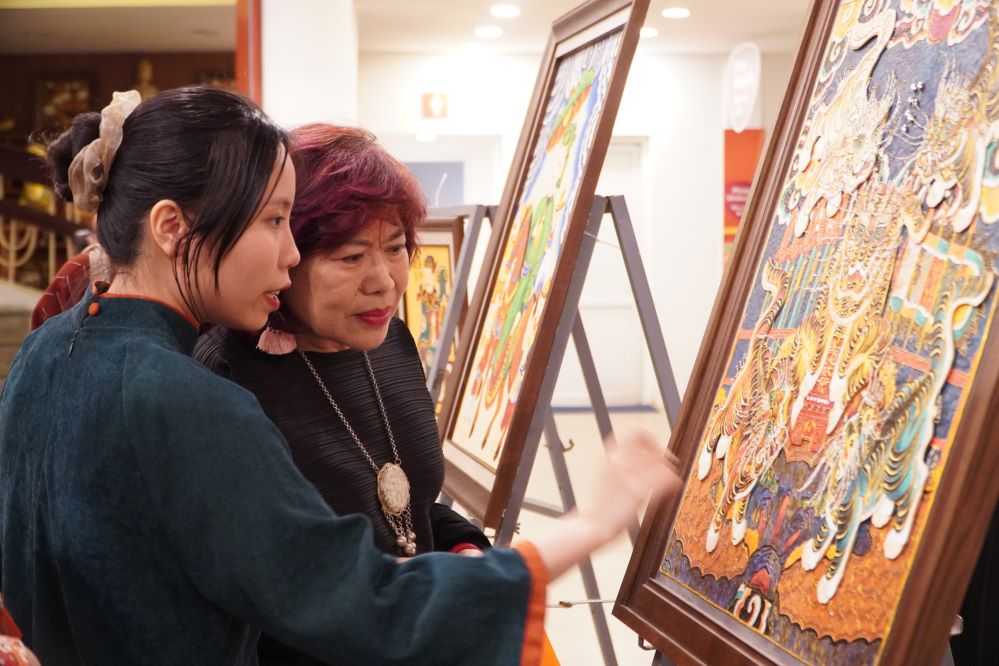 Saudari Nguyen Hoang Anh memperkenalkan lukisan "Hoa kim sa" (Foto: congluan.vn) |