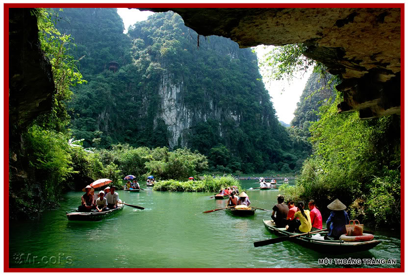 Jika bersampan di dalam gua, wisatawan punya rasa yang aneh, karena pandangan yang samar-samar dari stalaktit dan stalakmik yang bersinar di malam gelap, tetesan-tetesan air mengalir dari stalakmit, menenggelamkan diri di tengah-tengah suasana yang sejuk, maka wisatawan setelah ke luar darigua-gua akan merasa nyaman dan berbaur pada pemandangan alam yang penuh dengan sinar mata hari. Di atas permukaan air sungai, setiap rumpunan bunga Teratai dan bunga Lili mekar kemerah-merahan, setiap kawanan burung Le Le terbang di ujung depan sampan, permukaan air yang biru bisa melihat jelas Di dua tepi sungai adalah barisan-barisan gunung yang megah. Di atas perjalanan wisata, wisatawan akan singgah menaiki 350 buah anak tangga untuk mengunjngi Kuil Tran. Kuil ini yang dibangun pada abad ke-10 memuja seorang bangsawan pada zaman Raja Hung ke-18. Dari sini, bisa kelihatan panorama gua Nau Ruou dengan puluhan tong miras yang memanifestasikan tempat memproduksi miras yang dipersembahkan kepada Raja pada saat itu.