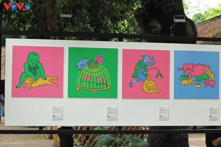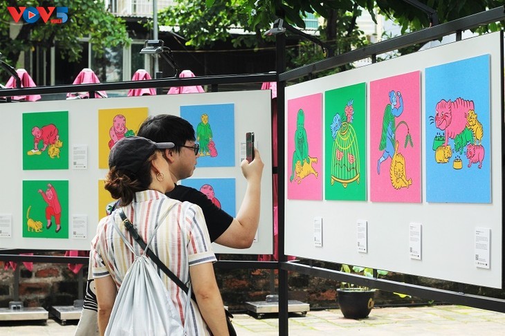 Baru-baru ini, pameran lukisan dengan tema: "Kerakyatan di Gen Z" yang dibuka di Kuil Van Mieu-Quoc Tu Giam membawa satu sudut pandang yang baru dan kreatif tentang kebudayaan rakyat Vietnam. Foto: Dinas Kebudayaan dan Olahraga Hanoi.